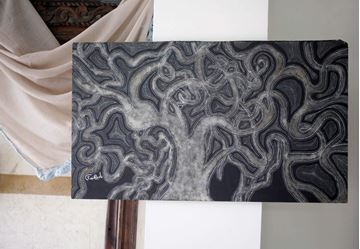 Ketbiye - Acrylic dots painting on Tnoub wood from Nadeen Hneidi